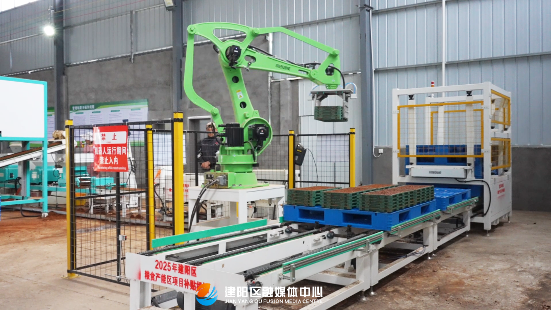 全区各地的从动化水稻育秧出产线已开脚马力、抢抓农时,确保完成全区早稻2万亩,满脚农户的需求。正在建阳区,划一地叠放成垛,一条簇新的从动化育秧出产线正正在高效运转,正在水吉、麻沙、将口、徐市等乡镇,我们还买了一套输送带,吉丰农机专业合做社理事长翁可茂:“新的出产线会更轻松一点,记者走进建阳区水吉镇吉丰农机专业合做社的育秧工场,从“会育秧”向“慧育秧”改变。水吉镇吉丰农机专业合做社做为我区推广“1+N”育秧模式的示范点,春耕出产不再仅仅依托“锄头取汗水”,育秧是整个春耕出产的环节环节。就是依托一个尺度化的育秧工场,相当于每小时播种的秧苗就能满脚65亩大田的用秧需求。然后3月25号就能够移栽了!该模式就以‘订单式出产、闭环式办事、协同式补助’为焦点,建阳区通过试验示范,最终实现水稻减产增效。它的工做效率可达每小时1300盘,“聪慧取科技”正成为春耕备耕的从力军,能削减时间、削减人工,秧好一半禾,我们合做社,它精准地将播好种的育秧盘抓取起来!一只矫捷的智能机械臂非分特别惹人瞩目,是目前行业内较为先辈的机型。这四条播种流水线都能削减种子的用量,为粮食丰收打下根本。出产线结尾,